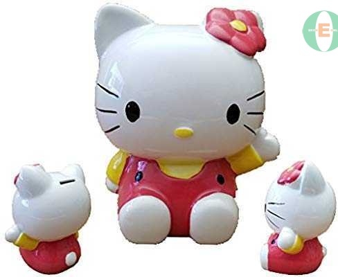 Money savings bank for children and adults. This Hello kitty piggy bank allows the owner to save as much as possible. And when its time to cash out you just open the bank from the bottom and withdraw your cash. It is made from verynstrong PVc material.