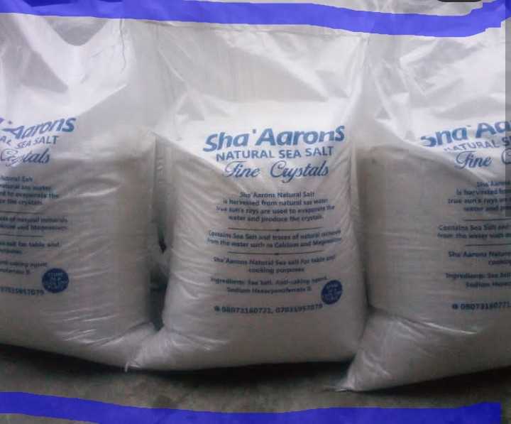View All AdsWe sell pure natural Sea Salt. Reduces high blood pressure. Reduces high sugar level. We sell 1kg for 1500 50kg for 35k Call Sosanya Temitope today on 08073160771 07035957079