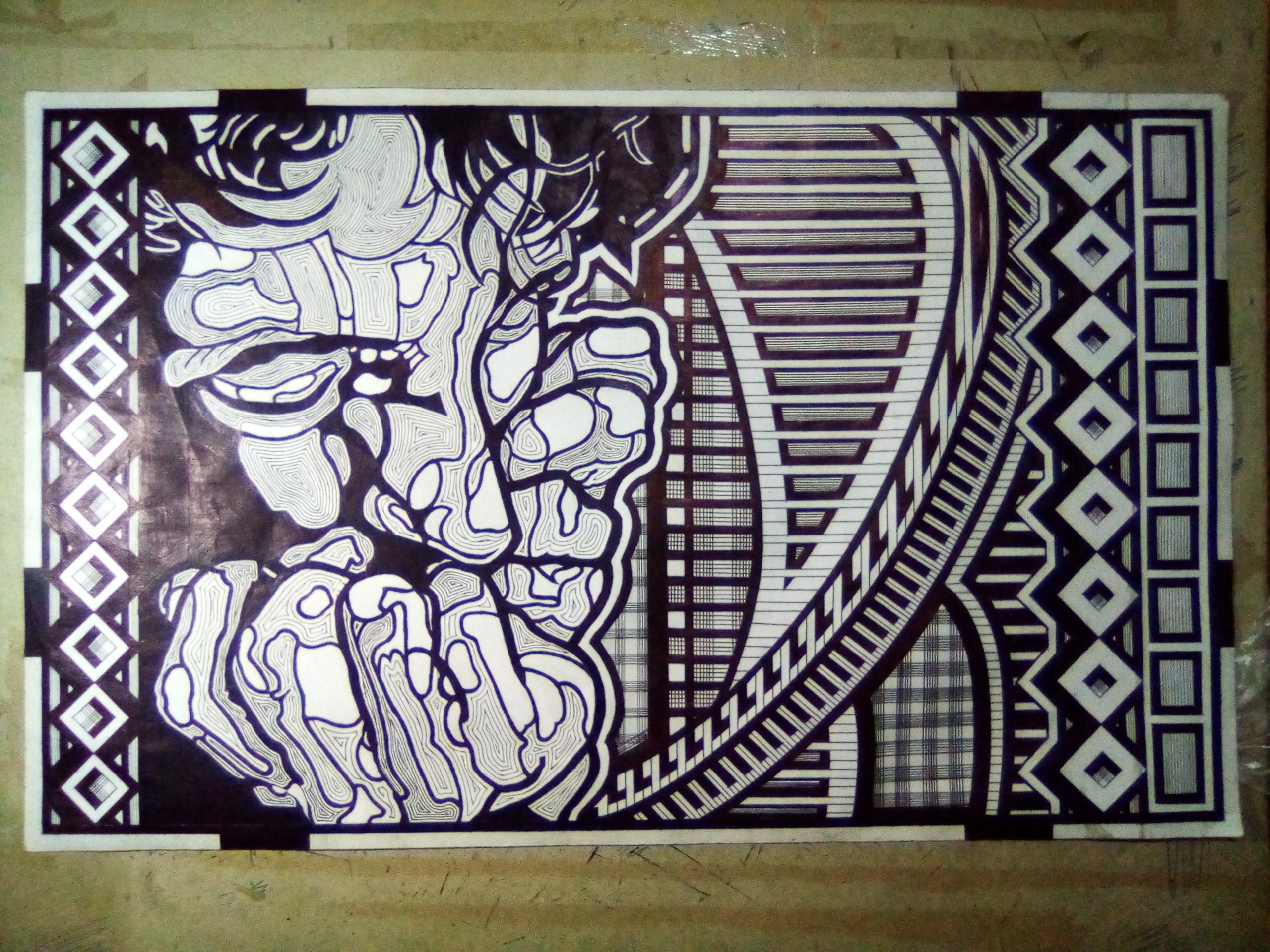 View All AdsThis is an abstract piece of a art painting done with pointillism and ink on canvas. It show a man with is hand on chin mediating about everything possible in full satisfied and at bliss. The art work uses the interplay of light, lines, contours, black areas to show as the man is mediating the interplay of light on the man skin. Size 65.5cm x 43.5cm
