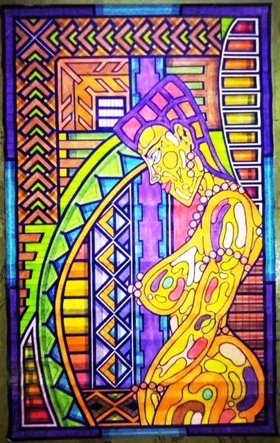 This is a painting done with pastel artistic work of abstract art. the size of the painting is 43 cm by 70 cm and it is pastel on canvass work of art. it show a woman in a erotic skin tight cloth as if inviting her lover to come and copulate with her. The painting